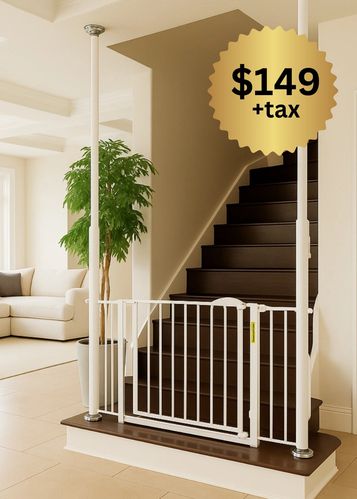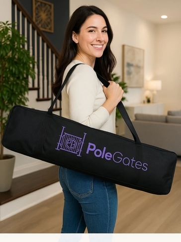 Say goodbye to chunky gates and wall damage. PoleGates installs in minutes with telescoping poles- no tools, no compromise.